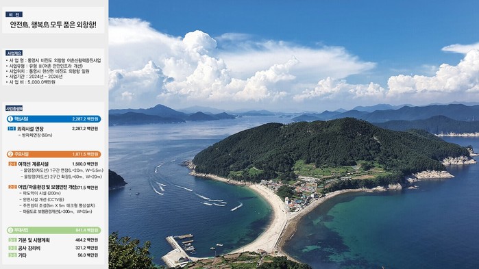 천영기 통영시장은 “어촌신활력증진 사업으로 낙후된 어항시설과 기항지시설을 정비하는 등 어촌 안전인프라를 개선해 시민 삶의 질 향상을 기대한다”고 전했다.