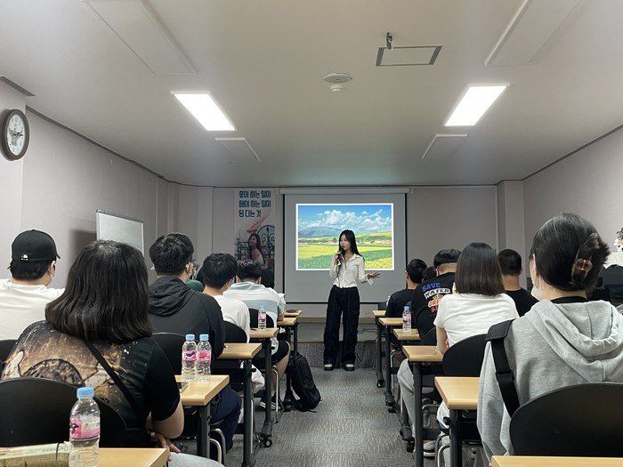 특강에서는 ‘좋아하는 일이 해야 하는 일이 된다는 것’을 주제로『오늘은 이 바람만 느껴줘』원유리 작가이자 유튜버의 버킷리스트, 여행에세이 출판, 인스타 팔로워 20만 크리에이터까지 여정에 대해 소개했다.