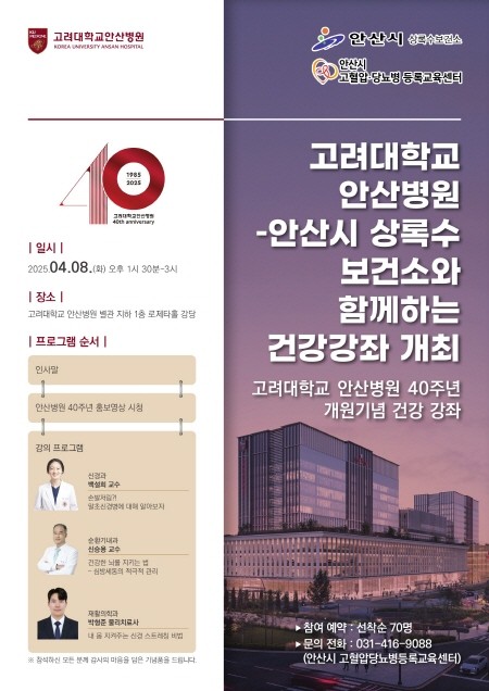 이번 건강강좌는 ‘제53회 세계 보건의 날’을 기념하고 고려대학교 안산병원의 개원 40주년을 맞아 시민들에게 유익한 건강 정보를 제공하고자 마련됐다.