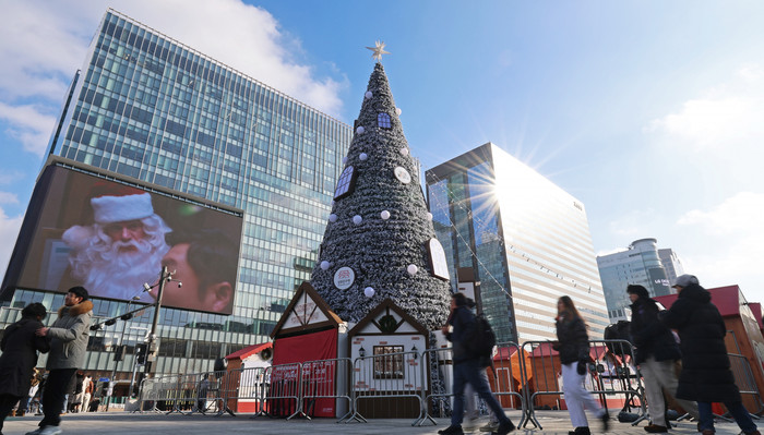 | ▲성탄절을 열흘 여 앞둔 14일 서울 종로구 광화문광장을 찾은 시민들이 겨울동화 속 산타마을 콘셉트로 꾸며진 크리스마스 광화문 마켓을 둘러보고 있다. /사진=뉴스1 |