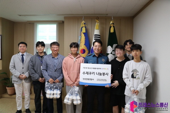 [프레스뉴스] 장현준 기자= 안산시(시장 이민근)는 지난 3일 남자단기청소년쉼터 청소년자원봉사 동아리 ‘유자레인저’가 관내 경찰서를 대상으로 수제쿠키 나눔 봉사를 펼쳤다고 4일 밝혔다.