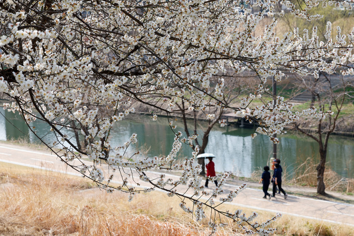 | ▲낮 최고 기온이 19도까지 오르며 포근한 봄날씨를 보인 24일 서울 성동구 하동매실거리를 찾은 시민들이 매화를 감상하고 있다./사진=뉴스1 |