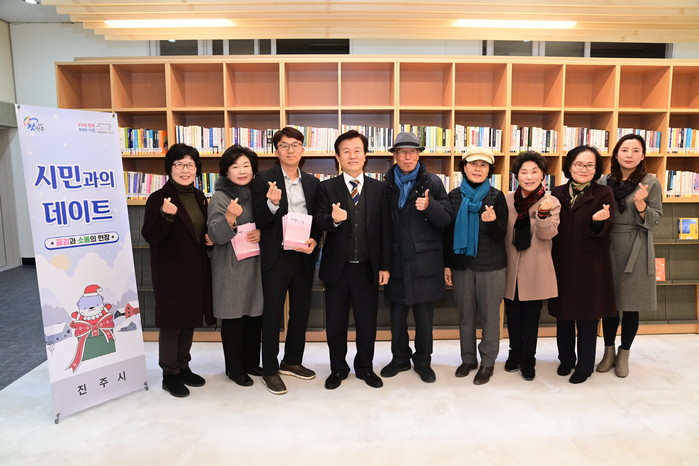 이날 데이트는 조규일 시장이 진주와 진주시민에 대한 진솔한 이야기를 수필로 그려낸 진주수필문학회 회원 10여 명과 함께 ‘시민이 참여하는 문화도시 진주’에 대한 의견을 나누는 자리로 마련됐다.