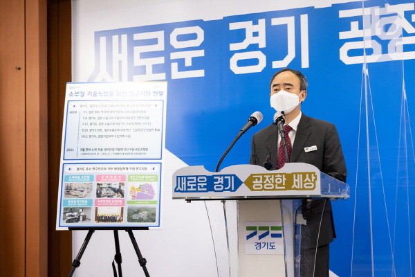 임문영 경기도 미래성장정책관은 26일 도청에서 기자회견을 열고, 소부장산업의 기술자립화 달성을 위해 추진한 경기도 소부장산업 지원사업의 중간점검 결과와 중장기 정책을 발표했다.