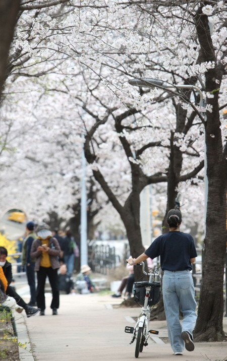 [프레스뉴스] 장현준 기자= 안양시 충훈동 안양천을 따라 심어진 벚나무에 꽃이 만개했다. 안양천 또는 충훈벚꽃길을 따라 거닐면 물소리와 벚꽃으로 봄날을 만끽할 수 있다.