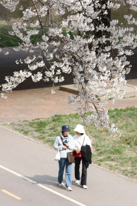 | ▲안양시 충훈벚꽃길에 벚꽃이 만개했다. 시민들이 산책길을 거닐며 벚꽃을 즐기고 있다.(촬영일 24.4.4.)사진=안양시 |