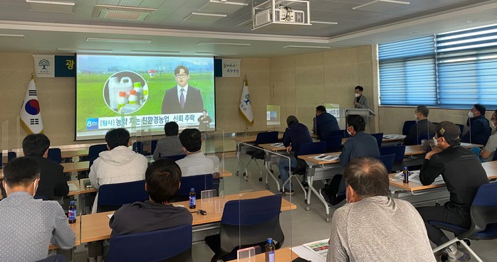 4월 21일 곡성군농업기술센터 대청마당에서 병해충 안전 방제 교육이 진행됐다. 이번 교육은 일반 농지 방제 시 화학 농약이 친환경 농지로 비산되는 것을 예방하고자 마련됐다. 광역 방제기(농업용 드론포함) 소유업체 및 농가에서 일반 농지에 병해충 방제를 진행할 때 인근에 위치한 친환경 농지로 방제약이 날아들 수 있기 때문이다. 교육에는 광역방제기(농업용 드론 포함) 소유업체 및 농가 30여명이 참석했다.