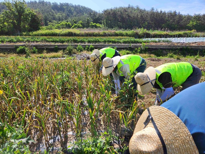 본격적인 마늘 수확기를 맞아 참여자들은 아침 일찍 농가를 방문해 마늘 뽑기 교육을 받고, 정해진 구역별로 마늘종을 자르며 농가에 힘을 보탰다.