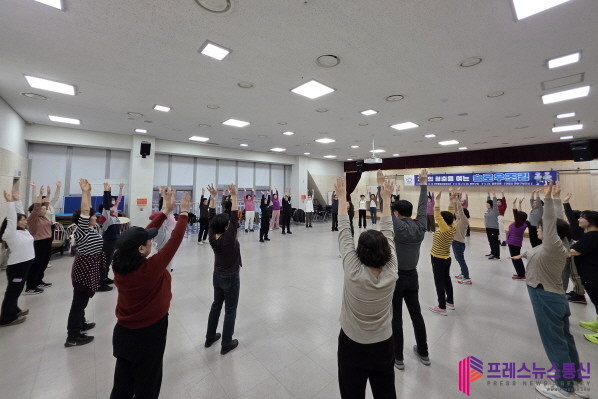 | ▲지난 5일 노쇠예방 운동프로그램 참가자들이 보강운동스트레칭을 하고 있다.(사진=안양시) |