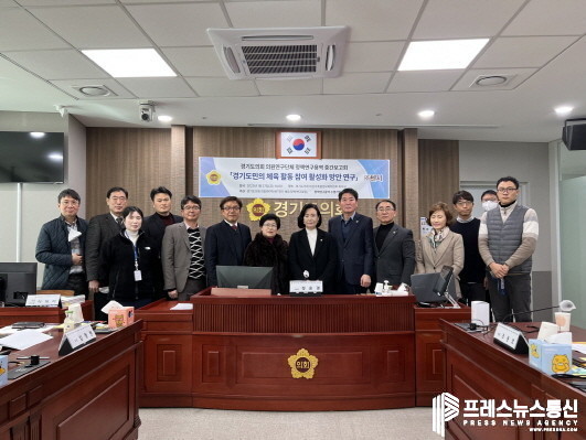 [프레스뉴스] 김대일 기자= 경기도의회 의원연구단체 「경기 체육 정책 연구포럼」은 지난 27일 의회 여성가족평생교육위원회 회의실에서 ‘경기도민의 체육 활동 참여 활성화 방안 연구(회장 : 경기도의회 여성가족평생교육위원회 정윤경 의원)를 위한 정책연구용역 중간보고회’를 개최하였다.