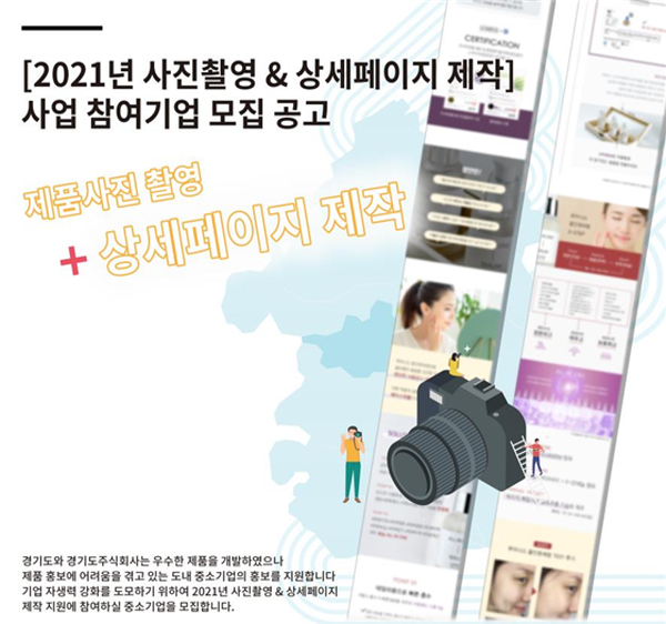 ▲ 2021 [사진촬영&상세페이지 제작] 사업 참여기업 모집 공고 포스터(사진=경기도) |