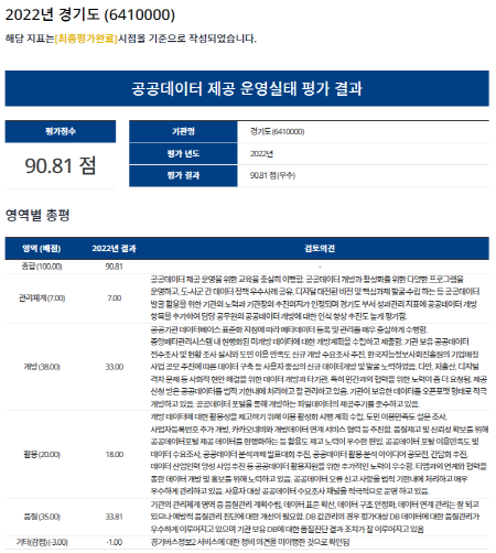 | ▲ 2022년 공공데이터 제공 운영실태 평가 참고자료(사진=경기도) |