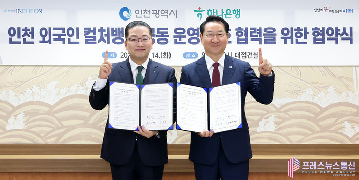 [프레스뉴스] 류현주 기자= 하나은행(은행장 이호성)은 14일 오전 인천시청에서 인천광역시와 함께 『인천 외국인 컬처뱅크」 공동 운영을 위한 업무협약을 체결했다고 밝혔다.