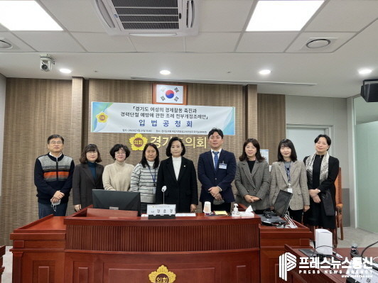 [프레스뉴스] 김대일 기자= 경기도의회 여성가족평생교육위원회 정윤경 의원(더불어민주당, 군포1)은 지난 27일(금) 위원회 회의실에서 「경기도 여성의 경제활동 촉진과 경력단절 예방에 관한 조례 전부개정조례안」 입법공청회를 개최하였다.