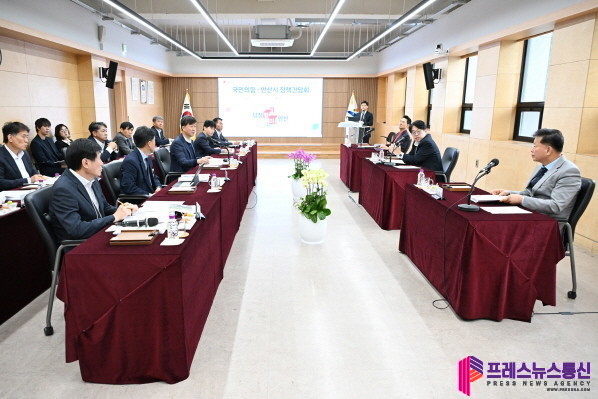 [프레스뉴스] 장현준 기자= 안산시(시장 이민근)는 지난 21일 시청 제1회의실에서 국민의힘 당협위원장과 정책간담회를 개최하고 시정 주요 현안과 협력 방안에 대한 다양한 의견을 논의했다고 22일 밝혔다.