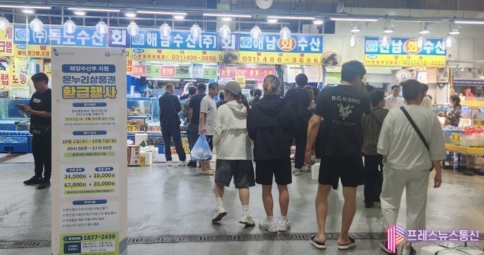 [프레스뉴스] 장현준 기자= 안산시(시장 이민근)는 올해 처음 실시한 안산시농수산물도매시장 추석 온누리상품권 환급행사(10월 1일~10월 5일)를 시민들의 큰 호응 속에 마무리했다고 13일 밝혔다.