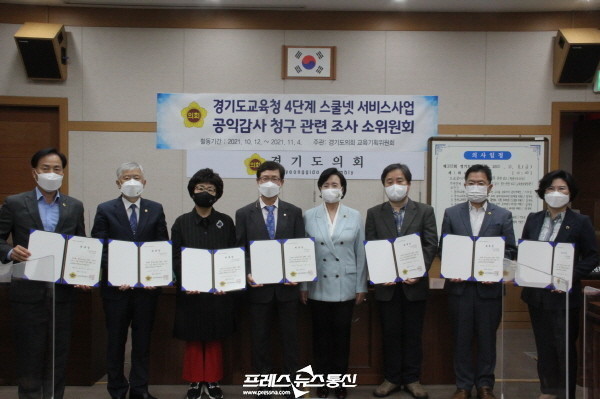 [프레스뉴스] 김대일 기자= 경기도의회 교육기획위원회(위원장 정윤경)는 지난 8일 상임위 회의에서 ‘경기도교육청 4단계 스쿨넷 서비스 사업 공익감사 청구 관련 조사 소위원회 구성안을 의결하고 12일 위원 위촉과 함께 활동을 시작했다.