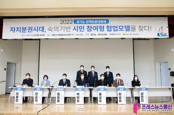 [프레스뉴스] 김대일 기자= 경기도의회 건설교통위원회 박태희 위원(더불어민주당, 양주1)이 좌장을 맡은 「자치분권시대, 숙의기반 시민 참여형 협업모델을 찾다!」 토론회가 25일(금), 양주시 옥정호수 도서관 3층에서 개최됐다. 경기도와 경기도의회가 공동주최한‘2022 경기도 상반기 정책토론 대축제’의 일환으로, 이번 토론회는 자치분권시대, 숙의기반 시민 참여형 협업모델 탐색 관련에 대해 논의할 필요성이 대두함에 따라 개최되었다.