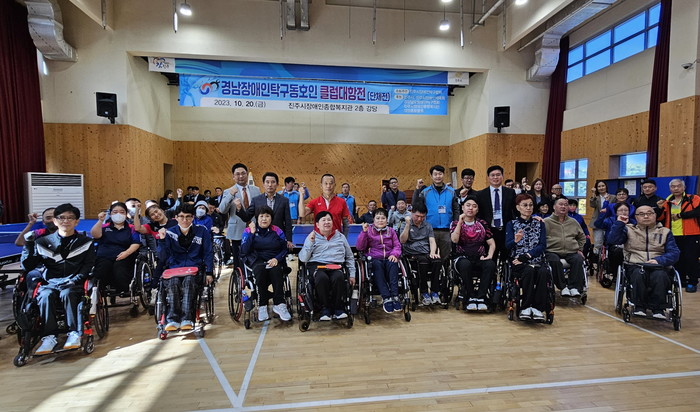 [프레스뉴스] 정호일 기자= ‘2023년 경남장애인 탁구동호인 클럽대항전’이 20일 진주시장애인복지관 2층 강당에서 탁구동호인 200여 명이 참가한 가운데 개최됐다.
