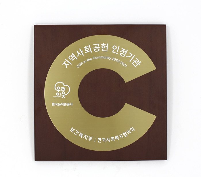 | ▲ 농어촌공사 지역사회공헌 인정기관 상패 사진(한국농어촌공사 제공) |
