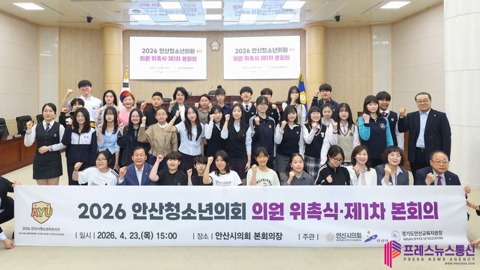 [프레스뉴스] 류현주 기자= 안산청소년의회가 지난 23일 열린 ‘2026 안산청소년의회 의원 위촉식’과 ‘안산청소년의회 제1차 본회의’를 시작으로 본격적인 활동에 들어갔다.