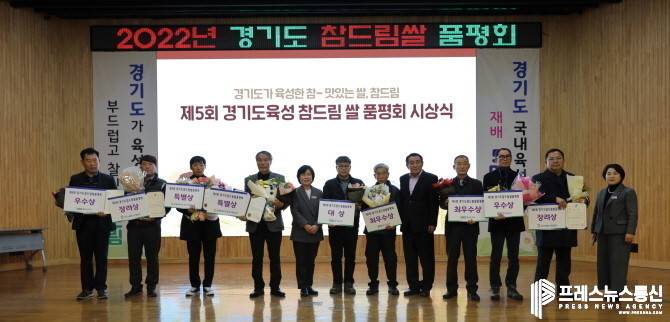 | ▲ 2022년 제5회 경기도육성 참드림 쌀 품평회 시상식(수상자 기념)사진=경기도 |
