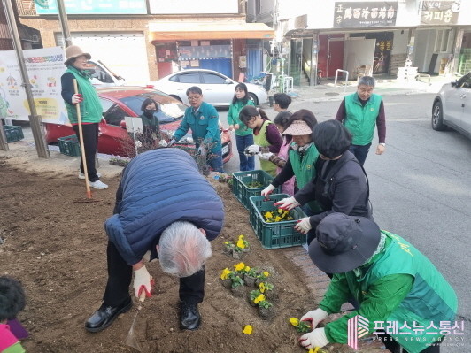 | ▲안산시 원곡동 새마을회, 봄꽃 식재로 따뜻한 봄맞이 준비(사진=안산시) |