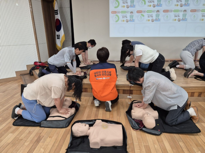 응급상황이 발생할 경우를 대비, ▲응급상황 행동요령 ▲주요 내‧외과적 응급처치 이론 ▲영아‧유아‧소아 대상 기도폐쇄 대처방법 ▲심폐소생술 등 신속한 응급조치를 할 수 있는 실습 등을 위주로 교육을 진행했다.