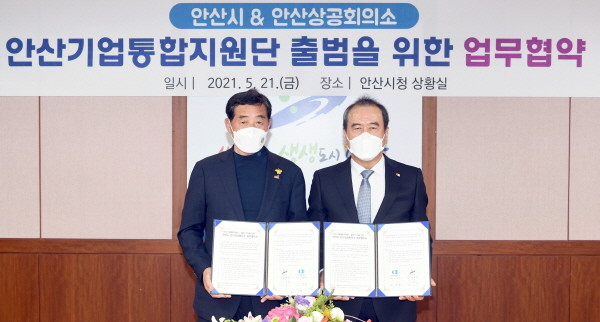 [프레스뉴스] 강보선 기자= 안산시(시장 윤화섭)는 21일 전국 기초지자체로는 처음으로 기업지원 역량 및 효율성을 강화하기 위해 안산상공회의소와 업무협약을 체결하고 ‘안산기업통합지원단’을 출범한다.