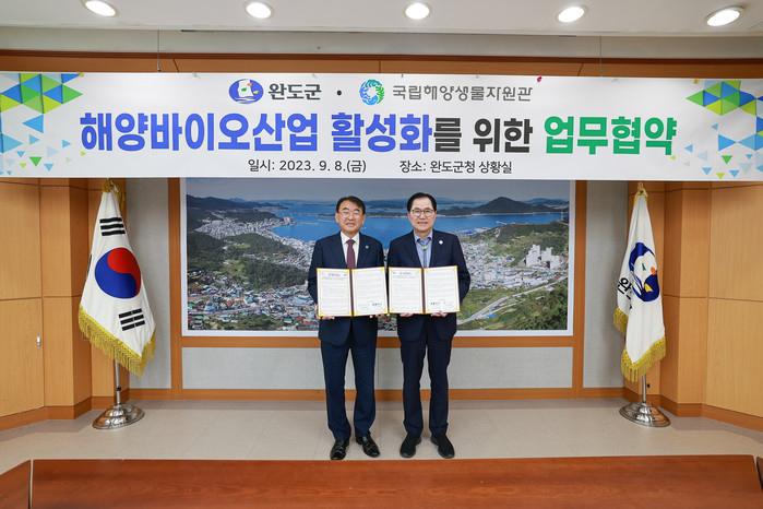 [전남=프레스뉴스] 박정호 기자= 전남 완도군(군수 신우철)은 국립해양생물자원관(관장 최완현)과 9월 8일 해양바이오산업 발전을 위한 업무 협약을 체결했다.