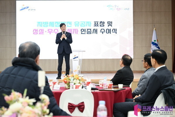 [프레스뉴스] 장현준 기자= 안산시(시장 이민근)는 지난 4일 안산시청 대회의실에서 납세자의 날을 기념해 성실·우수납세자로 선정된 법인과 개인에 인증서를 수여했다고 5일 밝혔다.