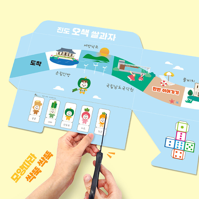 이번 우수디자인(GD)상품은 ‘디자인솔트’가 패키지 안쪽 면에 운림산방, 세방낙조, 국립남도국악원 등 진도의 주요 관광명소를 활용한 주사위 게임을 넣어 소비자들이 직접 만들고 체험할 수 있도록 디자인했다. 그래서 일회용 패키지에 그치지 않고 놀이에 활용하거나 장난감 보관용 등으로 재사용이 가능하도록 유도했으며, 소비자들이 환경 보호에 직접 참여할 수 있도록 3R(Reduce(감량), Reuse(재사용), Resycle(재활용))을 실천하여 디자인했다.