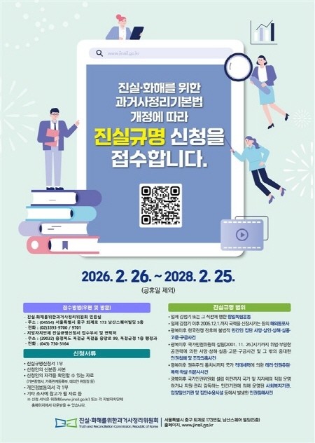 [프레스뉴스] 류현주 기자= 옥천군은 「진실·화해를 위한 과거사정리 기본법」 시행에 따라 2026년 2월 26일부터 과거사 진실규명 신청을 접수한다고 밝혔다.