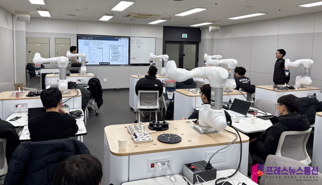 | ▲로봇직업교육센터에서 협동로봇을 활용한 조립 공정 자동화 교육을 진행하고 있다.(사진=안산시) |