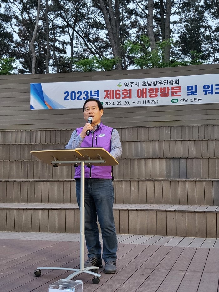 양주시 호남향우연합회는 상호간 신뢰를 바탕으로 화합하고 봉사하며 상생하는 양주시에 거주하는 9만 호남향우회를 대표하는 단체로써 애향심을 가지고 향수를 달래며 지역 경제에 도움을 주고자 2023년 제6회 애향방문을 방태승 연합회장과 250여명의 회원들이 신안군 관내를 방문 했다.
