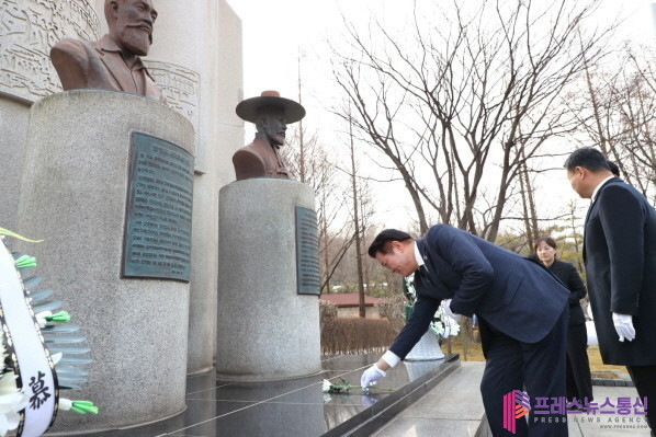 [프레스뉴스] 장현준 기자= 안양시(시장 최대호)는 제107주년 3·1절을 맞아 1일 오전 9시 동안구 갈산동 자유공원 내 보훈광장의 애국지사 기념상을 방문해 참배했다.