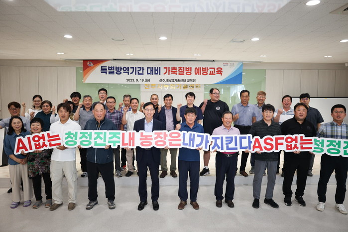 이날 교육에 참가한 농가들은 그 어느 때보다 비상한 각오로 ‘내 농장은 내가 지킨다’는 구호를 외치며 철저한 방역으로 가축전염병을 차단하겠다는 결의를 다졌다.