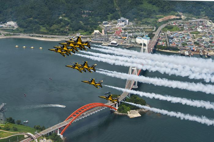 ‘2023 호주 아발론 국제 에어쇼’에서 종합 최우수상을 수상한 블랙이글스팀이 4일, 5일 2일간 삼천포대교 위에서 환상적인 곡예비행을 선보인다. 오전 11시, 오후 2시 30분 각각 25분씩 2회에 걸친 곡예비행에 이어 블랙이글스팀 사인회 및 기념촬영 행사도 마련된다.