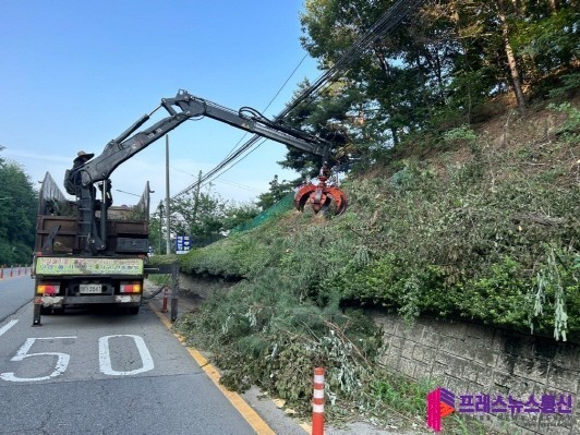 | ▲ 안산시 단원구, 집중호우 대비 급경사지 위험 수목 제거(사진=단원구) |