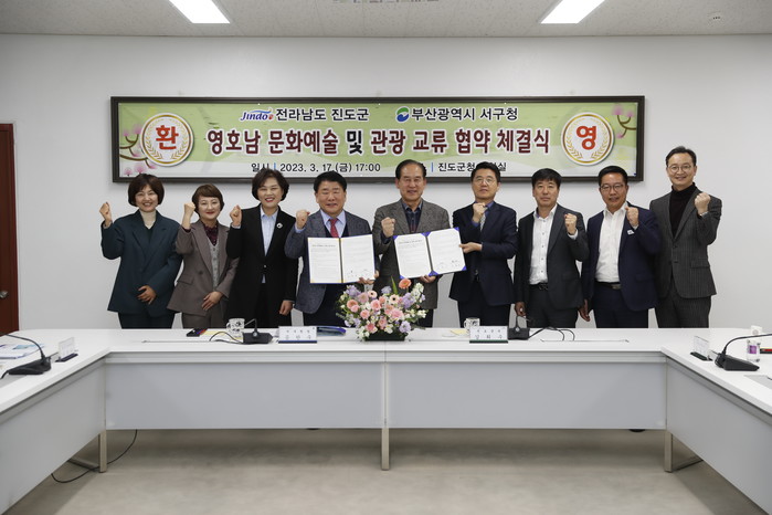 [전남=프레스뉴스] 신상균 기자= 전남 진도군이 부산 서구와 지난 17일 진도군청 상황실에서 문화예술‧관광 분야 교류 활성화를 위한 협약식을 가졌다.