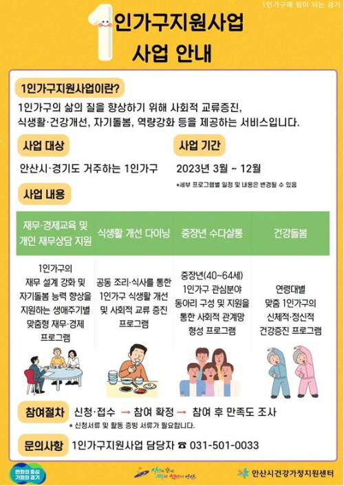 | ▲ 안산시건강가정지원센터, 1인 가구 지원사업 안내 포스터(사진=안산시) |
