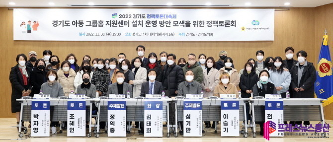[프레스뉴스] 김대일 기자= 경기도의회 경제노동위원회 김태희 위원(더불어민주당, 안산2)이 좌장을 맡은「경기도 아동 그룹홈 지원센터 설치 운영 방안 모색을 위한 정책토론회」가 11월 30일(수) 경기도의회 대회의실에서 개최됐다. 경기도와 경기도의회가 공동으로 주최하는 ‘2022 경기도 정책토론대축제’의 일환으로 열린 이번 토론회는 도내 160개소, 전국의 1/3 수준에 달하는 경기도 아동 그룹홈의 현황을 파악하고, 그에 따른 지원센터 설치 및 운영 방안을 모색하기 위해 개최됐다.
