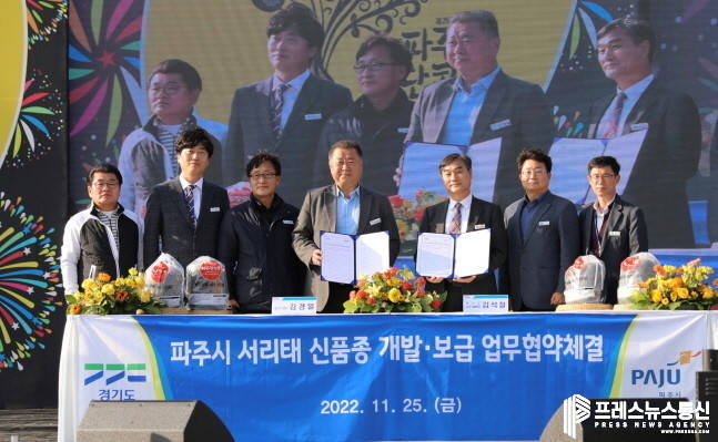 [프레스뉴스] 장현준 기자= 경기도농업기술원과 파주시가 25일 파주시 장단콩 축제장(임진각평화누리공원)에서 파주시 서리태 신품종 개발보급을 위한 업무협약을 체결했다.