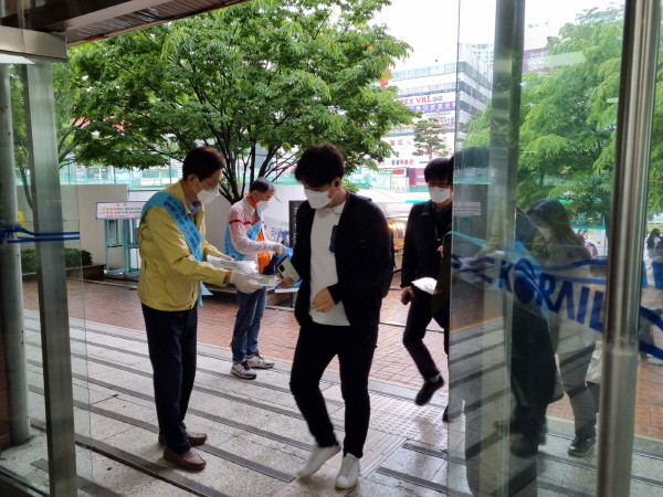 인파 몰리는 중앙역, 출근 시간대 홍보…철저한 방역수칙 이행 강조