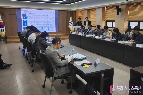 | ▲신길2공공주택지구 스마트도시건설사업 추진 협의회의가 지난 27일 안산시청에서 진행되고 있다.(사진=안산시) |