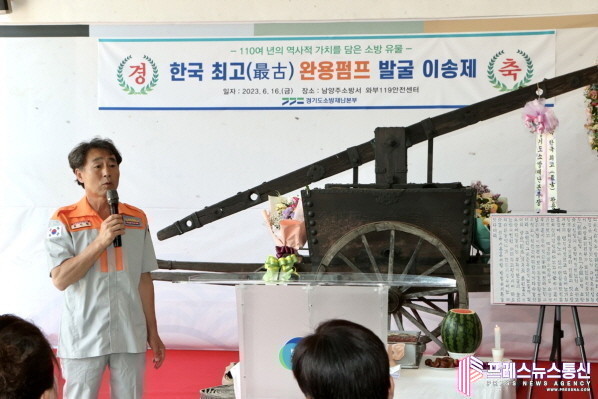 경기도소방재난본부는 발굴한 완용펌프를 오산 소재 국민안전체험관에 보관하기로 했으며 지난 16일 와부의용소방대에서 이송제를 열었다.