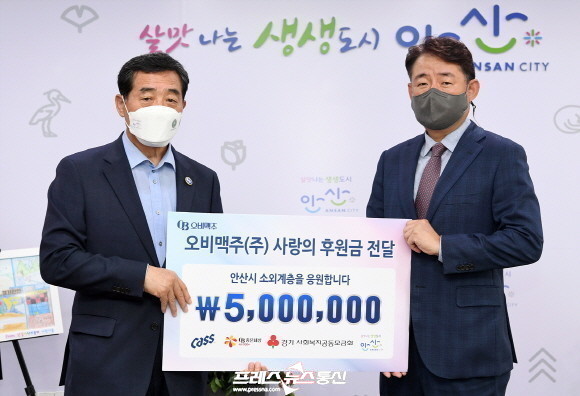 | ▲ 안산시, ㈜오비맥주 안양지점으로부터 사랑의 장학금 500만원 기탁 받아(사진=안산시) |
