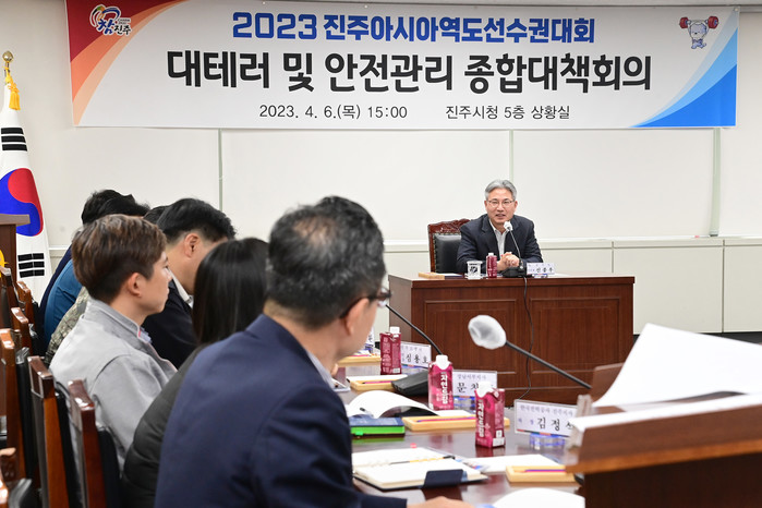 [프레스뉴스] 정재훈 기자= 진주시는 지난 6일 시청 5층 상황실에서 2023 진주아시아역도선수권대회 성공 개최를 위해 경남도 안전총괄과, 육군 제8962부대(1대대), 진주경찰서, 진주소방서 등 12개 관계기관과 함께 ‘2023 진주아시아역도선수권대회 대테러 및 안전관리 종합대책’회의를 가졌다.