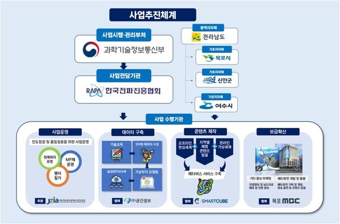 이 사업은 정보문화산업진흥원이 주관기관을 맡아 추진·관리하며, ▲사업지역은 목포시·신안군·여수시 ▲시스템 구축은 ㈜공간정보, ㈜스마트 큐브 ▲사업홍보 및 성과 확산 파트너로는 목포문화방송㈜ 이 참여하게 된다.