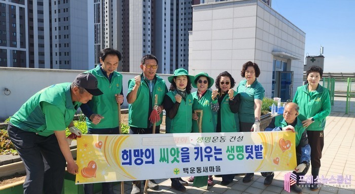 이영란 백운동장은 “오늘 옥상 텃밭 만들기에 함께하신 새마을 회원님들께 감사드리며, 오늘같이 텃밭을 조성함으로써 주민들이 도심 속에서 자연을 접할 기회를 늘리고 이웃 간 돈독한 정을 쌓을 수 있을 것으로 기대한다”고 말했다.